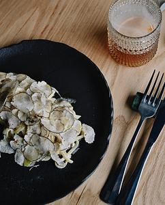 $12 Panelle (Traditional Fried Chickpea Fritters with Marinated Salmon and Pink Peppercorns)